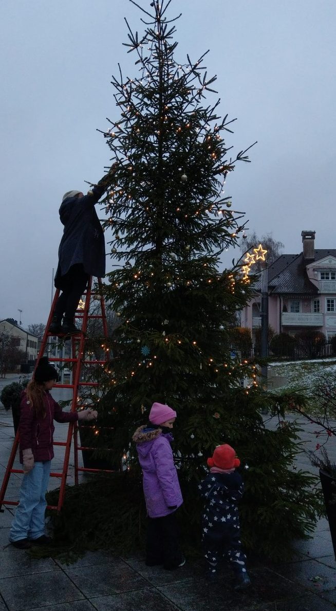 Bereits vor dem Weihnachtsmarkt hat der Verein wieder das Schmücken des Weihnachtsbaums am Rathaus übernommen und die Kosten getragen. Durch die "rekordverdächtige" Höhe des Baums mussten wir uns dieses mal ziemlich strecken.